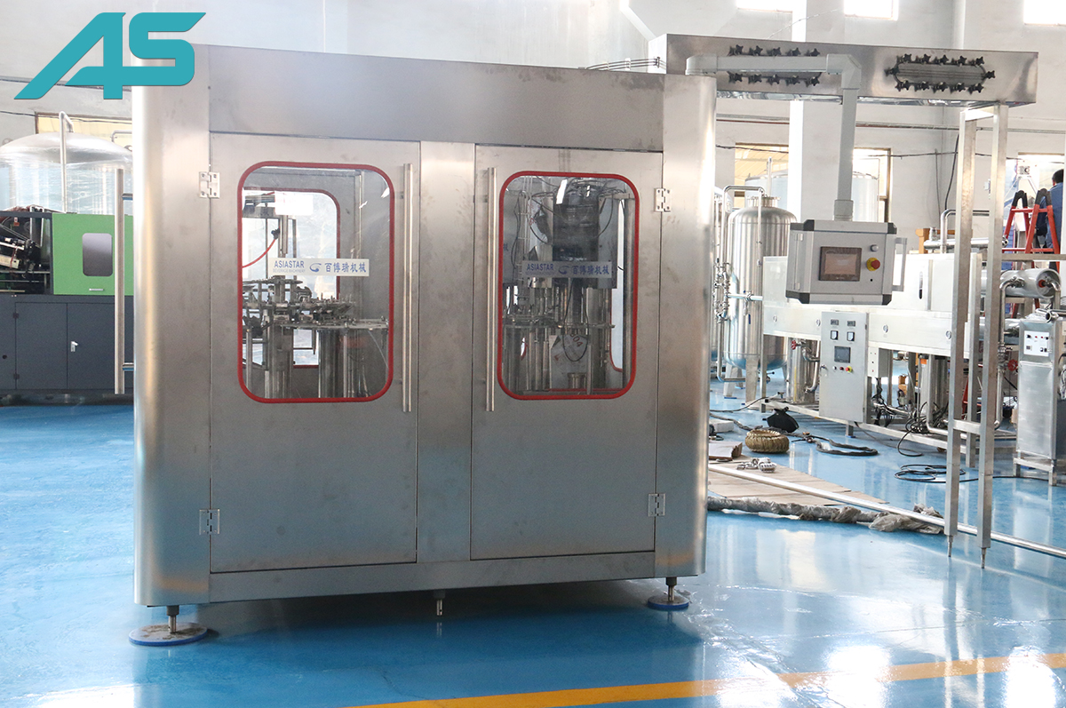 沖瓶、灌裝、旋蓋三合一機組是專門用于高產(chǎn)量純凈水,礦泉水,山泉水,小瓶水的灌裝生產(chǎn),最大生產(chǎn)能力每小時可達到24000瓶,獨特的灌裝閥設計,可以準確控制灌裝液位。衛(wèi)生級的不銹鋼SUS304管路可以準確保證產(chǎn)品灌裝時的潔凈度,采用觸摸屏控制,操作簡單。