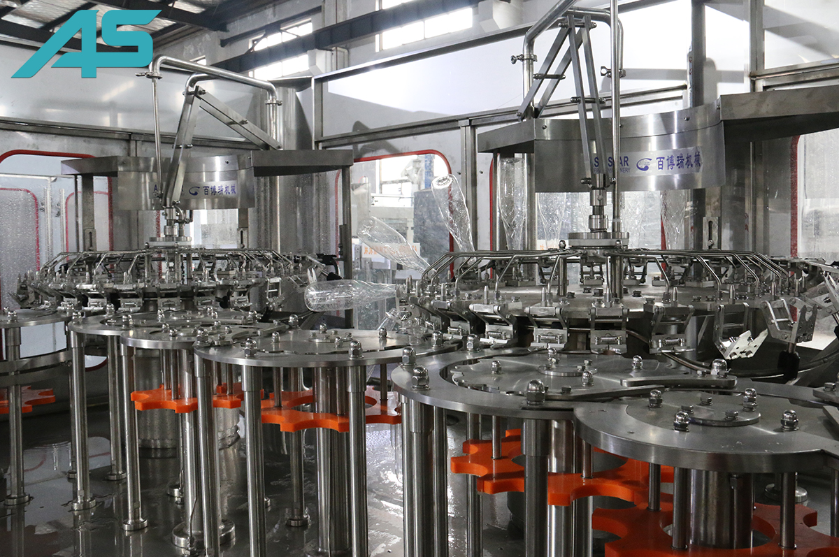 配套設備: 純凈水水處理設備、吹瓶機、理瓶機、瓶身吹干機、套標機、貼標機、膜包機、裝箱機。
