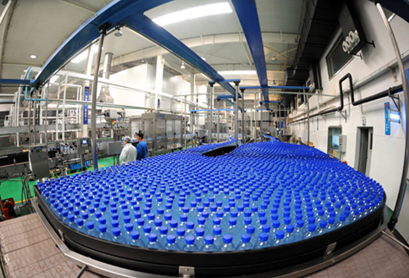 生產線主要設備: 水處理,理瓶機,三合一灌裝機, 吹干機,套標機,貼標機,膜包機,裝箱機。